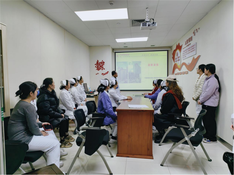 以“练”筑防,防患未“燃”。演练模拟门诊一诊室因电器线路老化突发“火情”。医护人员第一时间报警,切断非消防电源,并利用就近灭火器扑救。消控室迅速启动应急预案,护士迅速疏散患者,全员安全撤离。随后,保卫科陈创富点评,现场演示灭火器及消火栓使用,全员分组进行灭火实操。