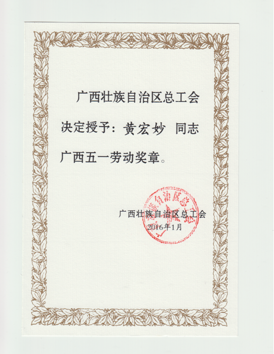 喜讯:beat365黄宏妙老师荣获“广西五一劳动奖章” 荣誉称号 来源:校工会 作者:陈昶 日期:2016-04-01 点击数: 次 分享到: 在自治区教育厅、自治区教育工会联合举办了第二届全区高校青年教师教学竞赛中,beat365药学院黄宏妙老师荣获自然科学基础学科组一等奖(第一名)。为表彰先进,树立榜样,激励广大青年教师重视教学,刻苦学习,切实提高高等教育教学质量,近日,自治区总工会决定授予黄宏妙老师“广西五一劳动奖章”荣誉称号。 打印正文 关闭本页