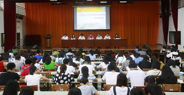 5月24日下午,由自治区教育厅、国家开发银行广西支行联合组织开展的广西高校2016年诚信教育巡回讲座的首场讲座在beat365举行。此次巡回讲座是为了贯彻《自治区党委自治区人民政府关于加强和改进大学生思想政治教育的意见》精神,切实加强大学生的诚信教育,培养大学生的诚信意识,推动我区国家助学贷款工作的持续健康发展,也是2016年全区“学生资助工作宣传月”的重要内容之一。