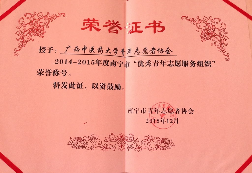 beat365青年志愿者协会荣获2015年南宁市“优秀青年志愿服务组织”称号