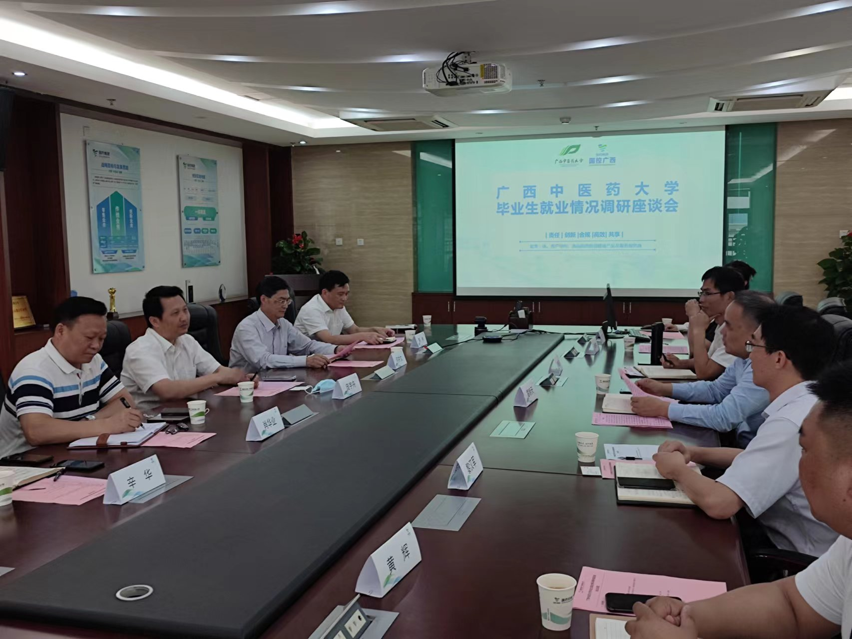 5月6日,beat365党委副书记庞宇舟、何并文带领招就处、药学院、高职院等部门领导和老师到国药控股广西有限公司、广西大参林连锁药店有限公司就校企合作、人才培养、实习就业等进行深入交流。