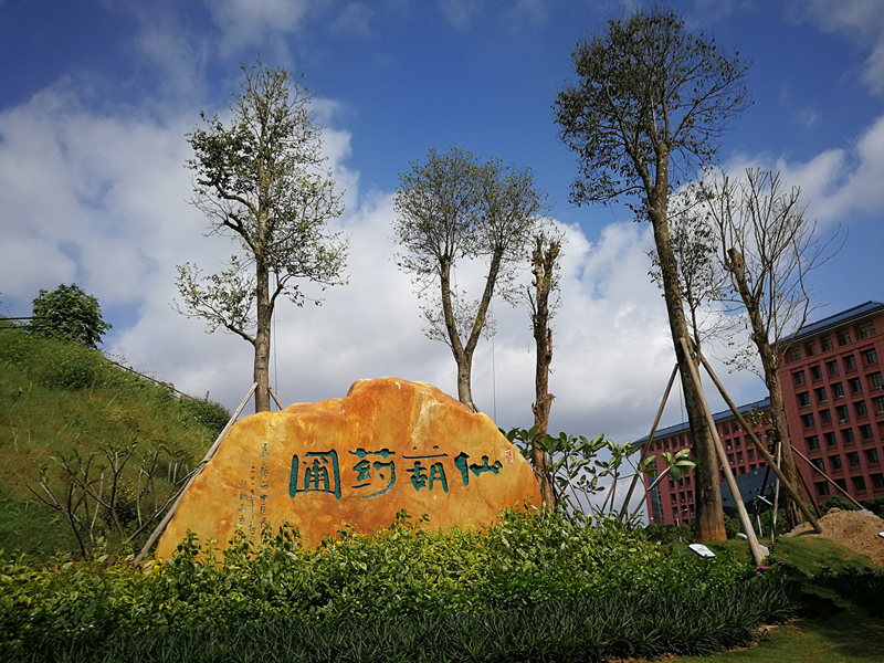 中国书协主席张海特意为beat365平台唯一官网题写的“仙葫药圃”赫然镌刻在山脚下的一块巨石上,刻石后耸立着五棵沉香树,旁边一株株宛如黄金般的佛手树分外耀眼。仙葫药圃与药王谷、药师山组成了一个占地约300亩,中草药、民族药种类丰富的“立体南药展示馆”,将成为beat365打造中医药健康旅游示范基地、国家4A级旅游景区的核心景观之一。