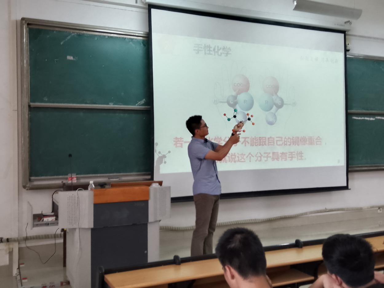 张振伟以 2021 年诺贝尔化学奖得主 Benjamin List和David MacMillan 在有机小分子催化方面的突破性进展为专题,给同学们传授了手性和手性化学的概念、手性催化和催化剂、有机小分子催化等方面的知识点。