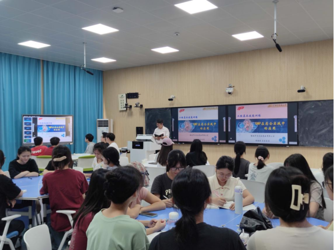 讲座中,黄语婷凭借丰富的生产实践经验,结合大量具体案例,生动详细地阐述了GMP在药企实践中的应用。她不仅深入剖析了GMP的核心要素和操作流程,还结合自身工作实践,探讨了制药工程专业学生在药企中的就业前景和发展方向。同学们在智慧教室中认真聆听,积极互动,收获颇丰。