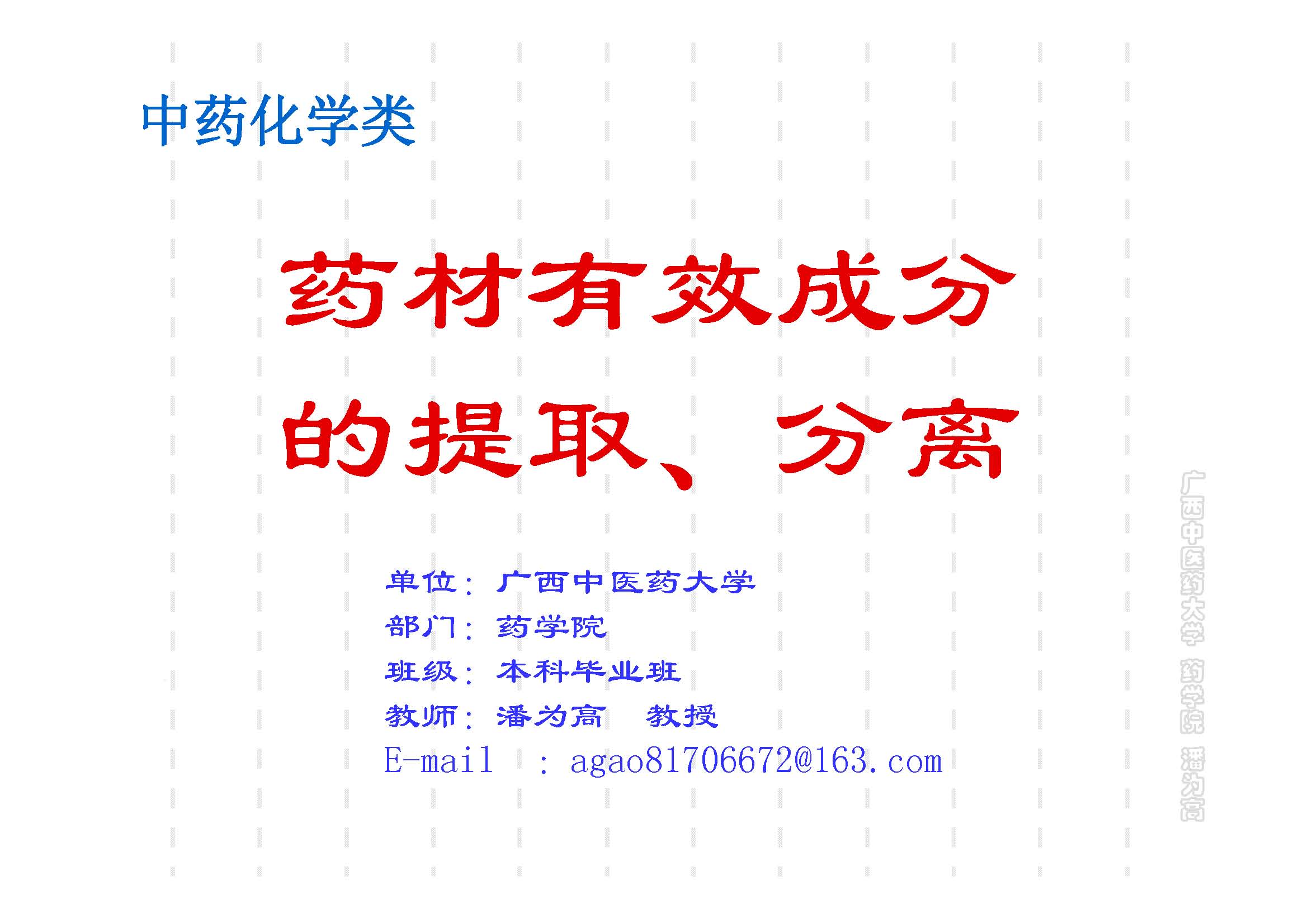 基础知识-药材有效成分的提取、分离(本科毕业实习讲座)