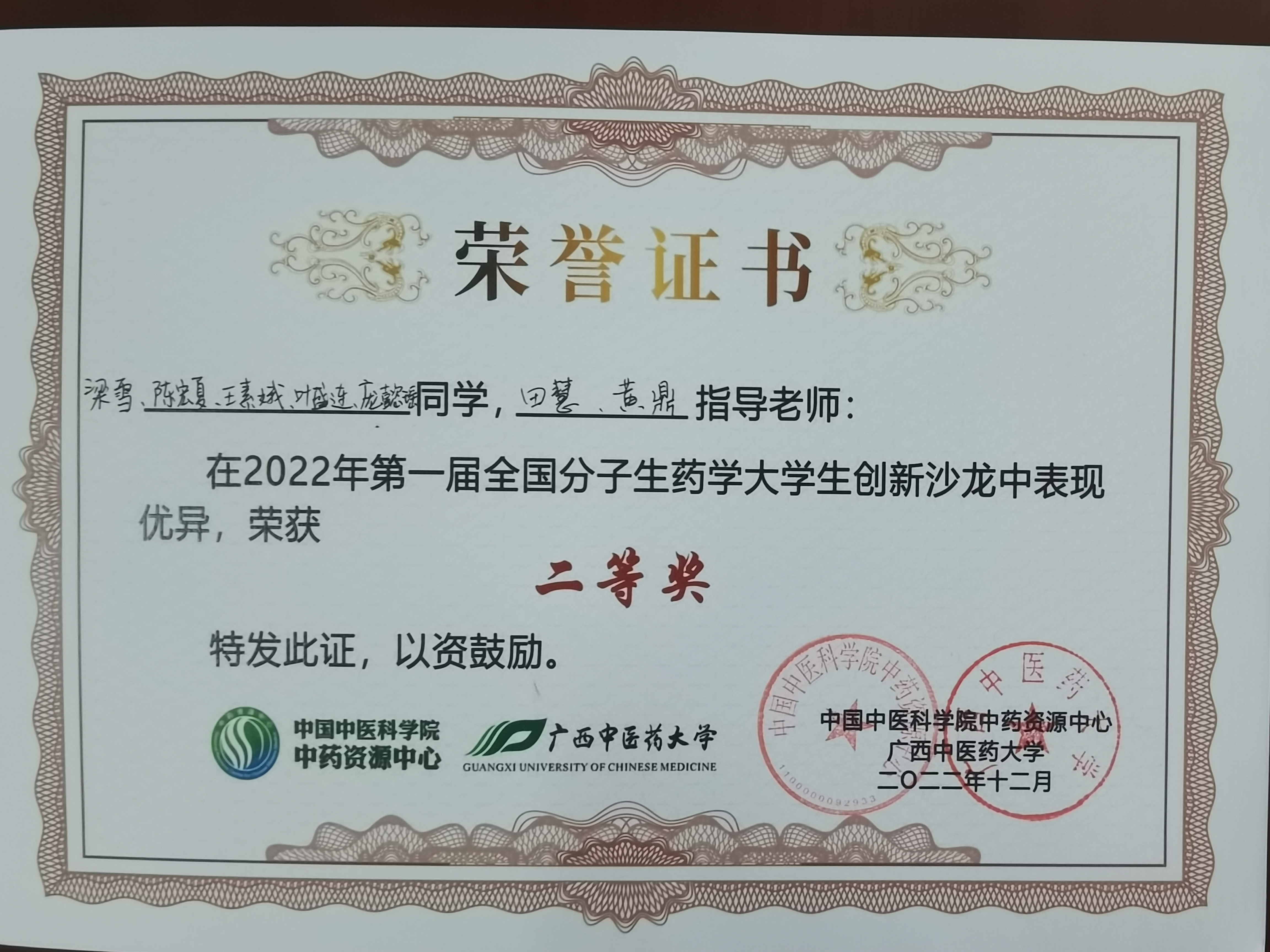 药学院研究生喜获首届分子生药学大学生创新沙龙二等奖 发布时间:2023-03-01 16:28:17 浏览次数: 次 【字体:小 大】 在中国中医科学院中药资源中心和beat365平台唯一官网共同举办的首届分子生药学大学生创新沙龙活动中,教研室田慧教授等指导的学生梁雪、陈宏夏、王素娥、叶盛连、庞懿瑶做的学术报告“巴戟天“紫肉”与质量形成的分子机制初步研究”获得二等奖。 分享到: 【打印正文】