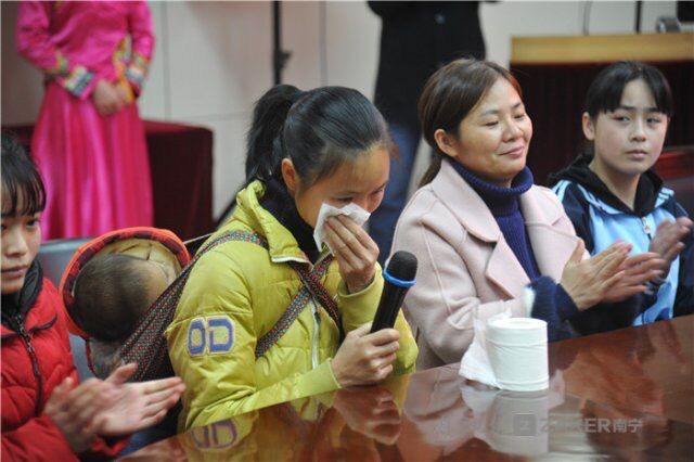 受助患儿母亲在发言时感动落泪