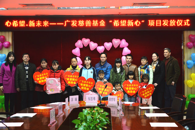 2月6日下午,心希望,新未来——广发慈善基金“希望新心”项目发放仪式在瑞康医院23楼学术报告厅举行,医院副院长韦思尊,广发银行南宁分行副行长黄碧琴,广西青少年发展基金会副秘书长苏瑜,医院心胸外科主任杨柳山等到场参加仪式。