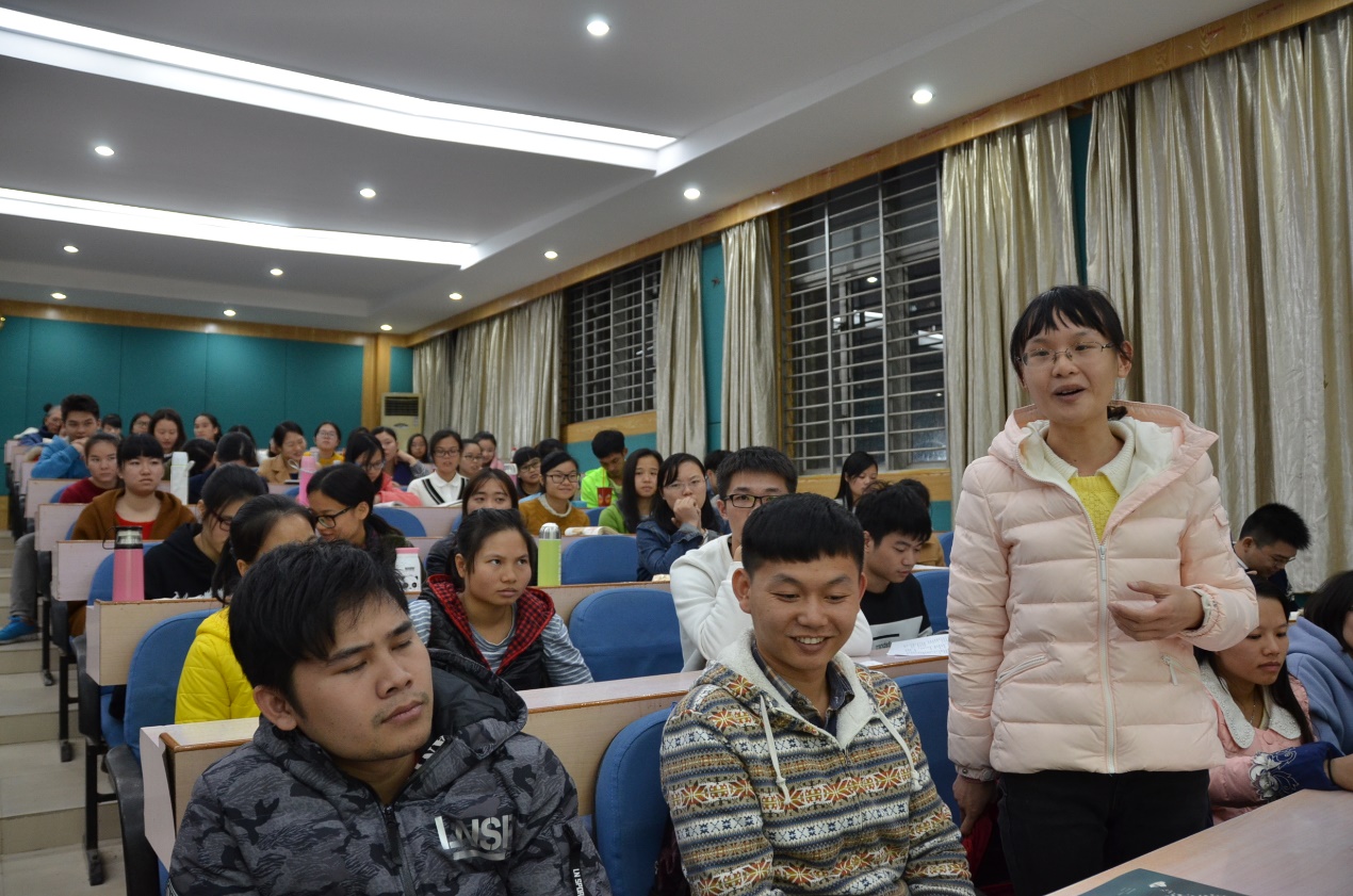接下来,黄汉儒教授作了以“广西民族医药工作30年回顾与壮医药概况”为主题的精彩讲座。黄老回顾了广西民族医药工作30年的发展历程,他旁征博引、引经据典,用诙谐幽默的语言、生动形象的例子深入浅出地讲述了广西民族医药发展的艰辛以及取得的成果。此外,黄老还生动形象地概述了壮医药理论、诊疗技法等壮医药的概况,并结合自身的经历以及民族医药的发展,诠释了持之以恒、无怨无悔地为民族医药发展而努力奋斗的医者精神、学者精神,最后黄老鼓励同学们努力学习壮医、发展壮医、建设壮医。