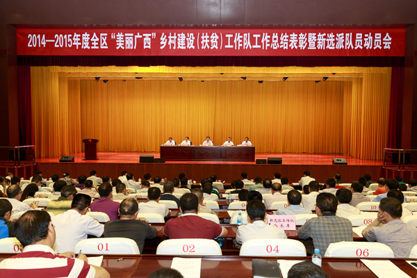 近日,2014—2015年度全区“美丽广西”乡村建设(扶贫)工作队工作总结表彰暨新选派队员动员大会在自治区党校举行。自治区党委常委、组织部长喻云林出席了大会。由beat365作为牵头单位的“美丽广西”乡村建设(扶贫)工作驻横县工作队被授予“全区‘美丽广西’乡村建设(扶贫)先进工作队”称号并上台接受表彰。